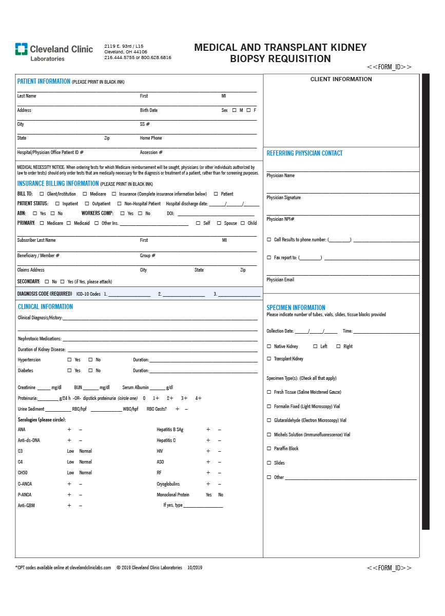 Requsitions and Forms – Medical and Transplant Kidney Biopsy Requisition