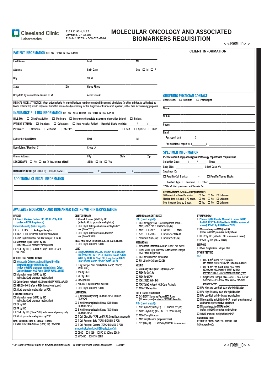 Requsitions and Forms – Molecular Oncology and Associated Biomarkers Requisition