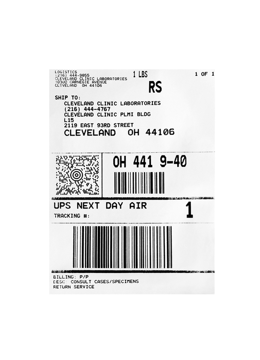 Shipping Label Example – Specimen Shipping for Cleveland Clinic Laboratories