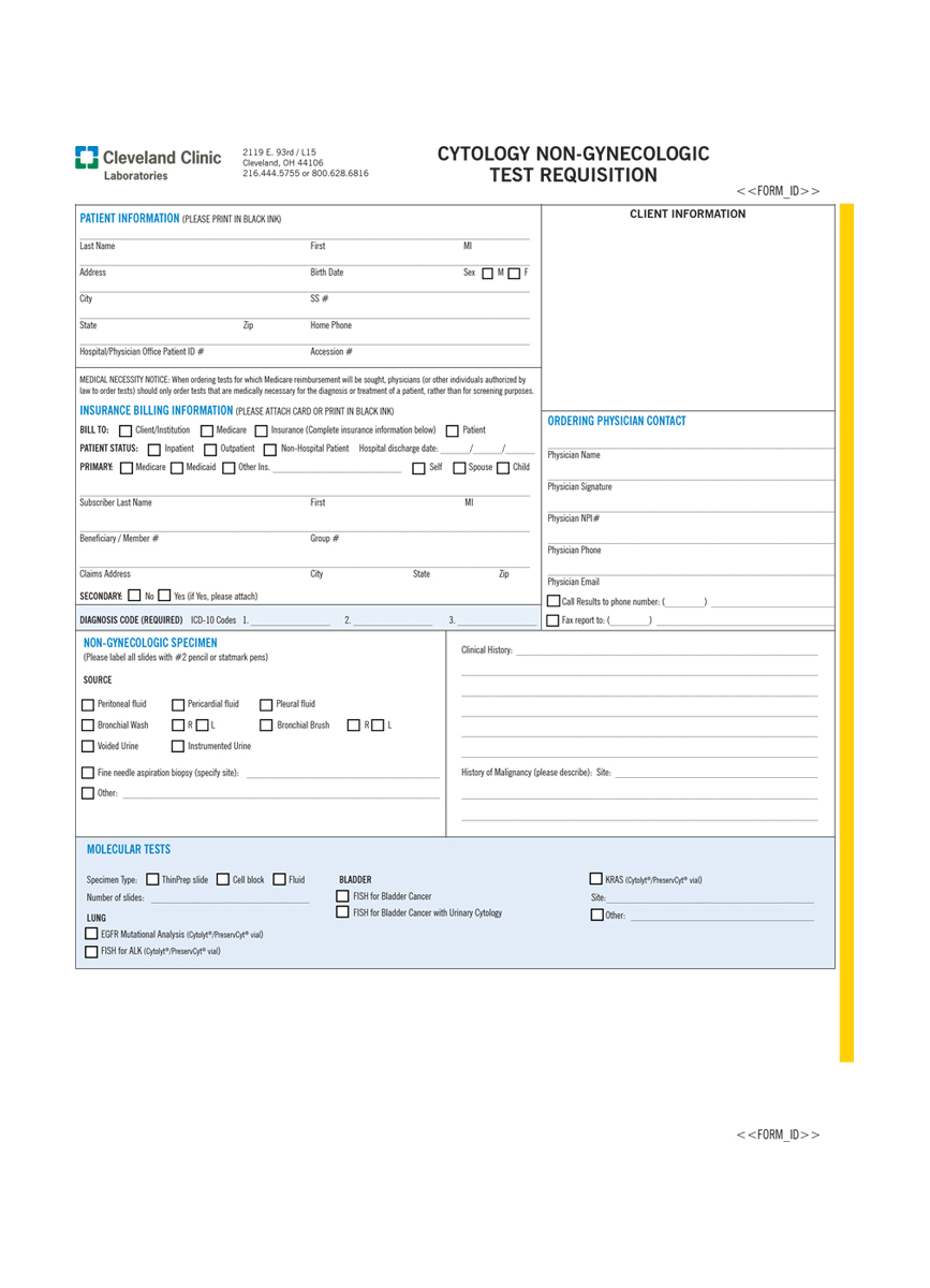 Requsitions and Forms – Cytology (Non-Gynecologic) Requisition