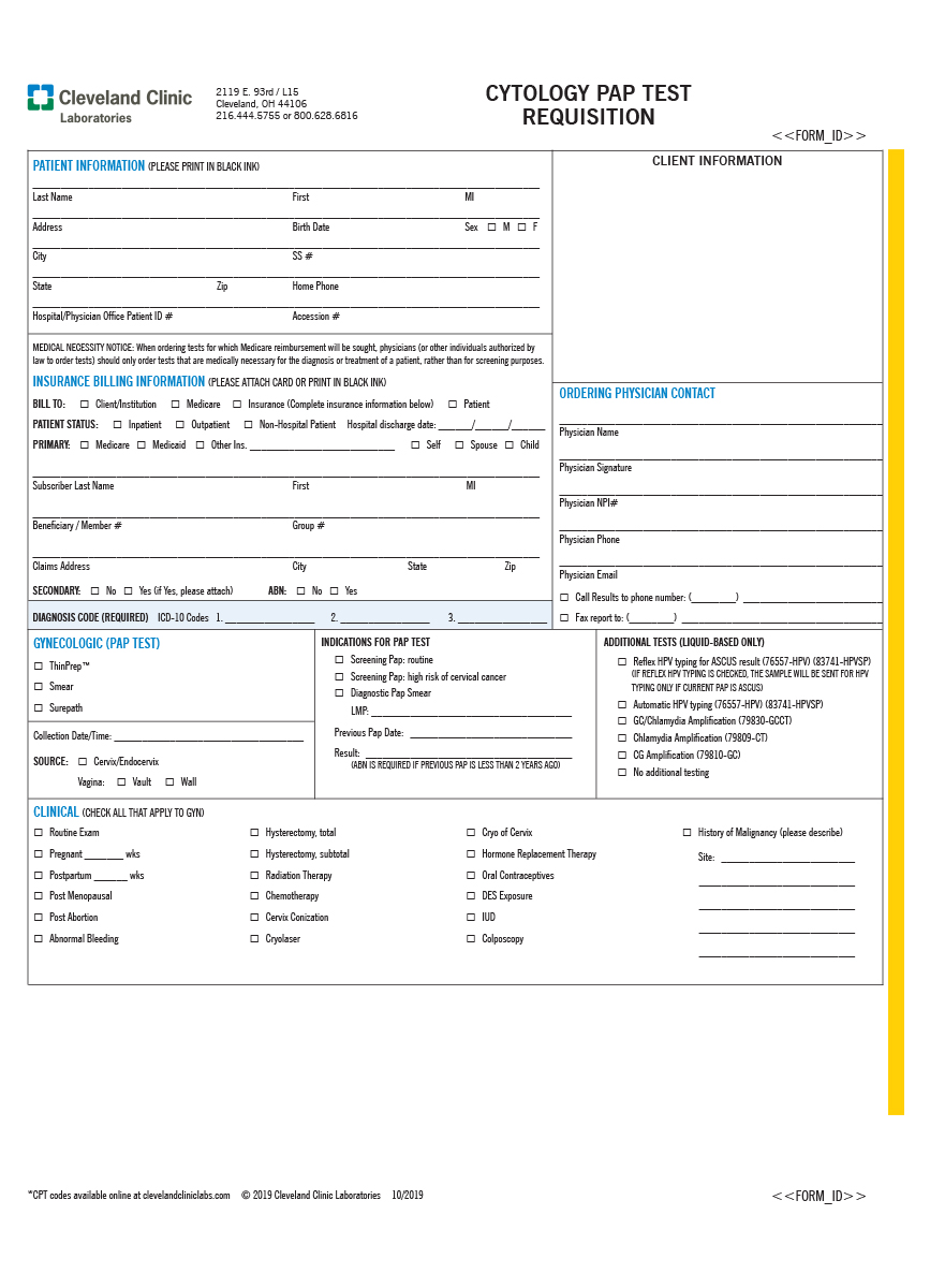 Requsitions and Forms – Cytology PAP Test Requisition