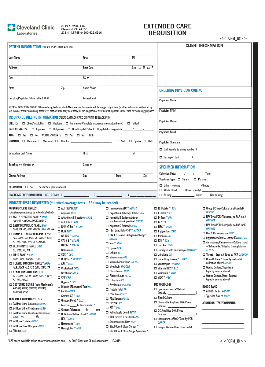 Requsitions and Forms – Extended Care Requisition