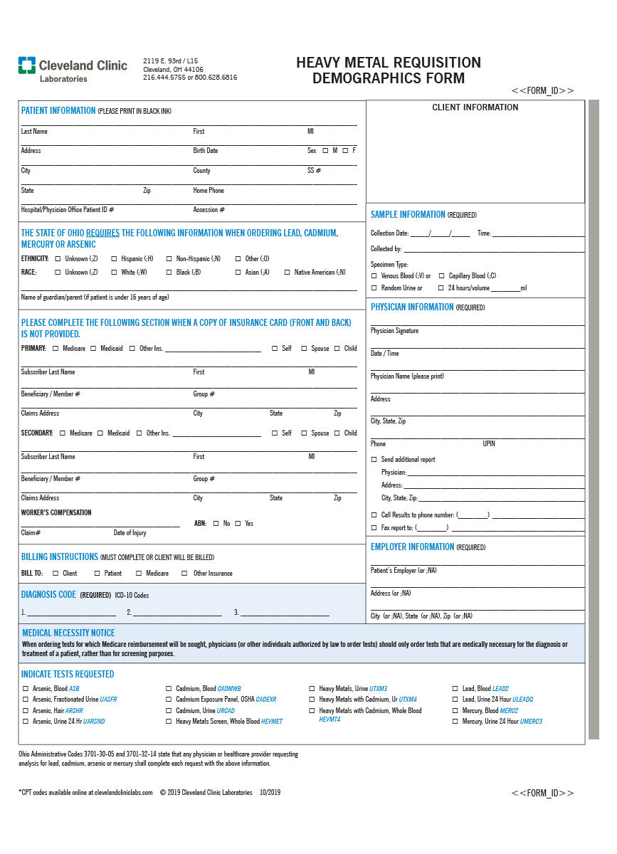 Requsitions and Forms – Heavy Metal Requisition, Demographics Form