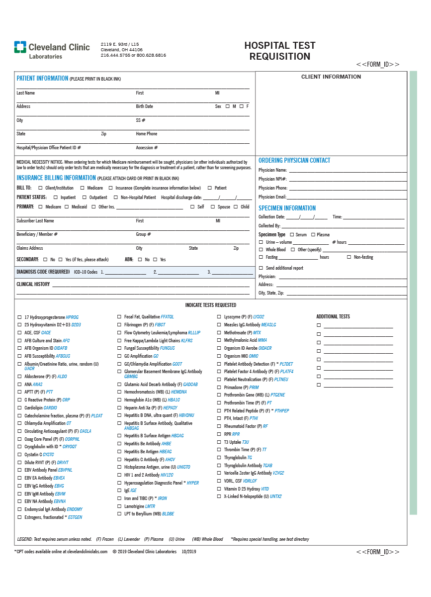 Requsitions and Forms – Hospital Requisition
