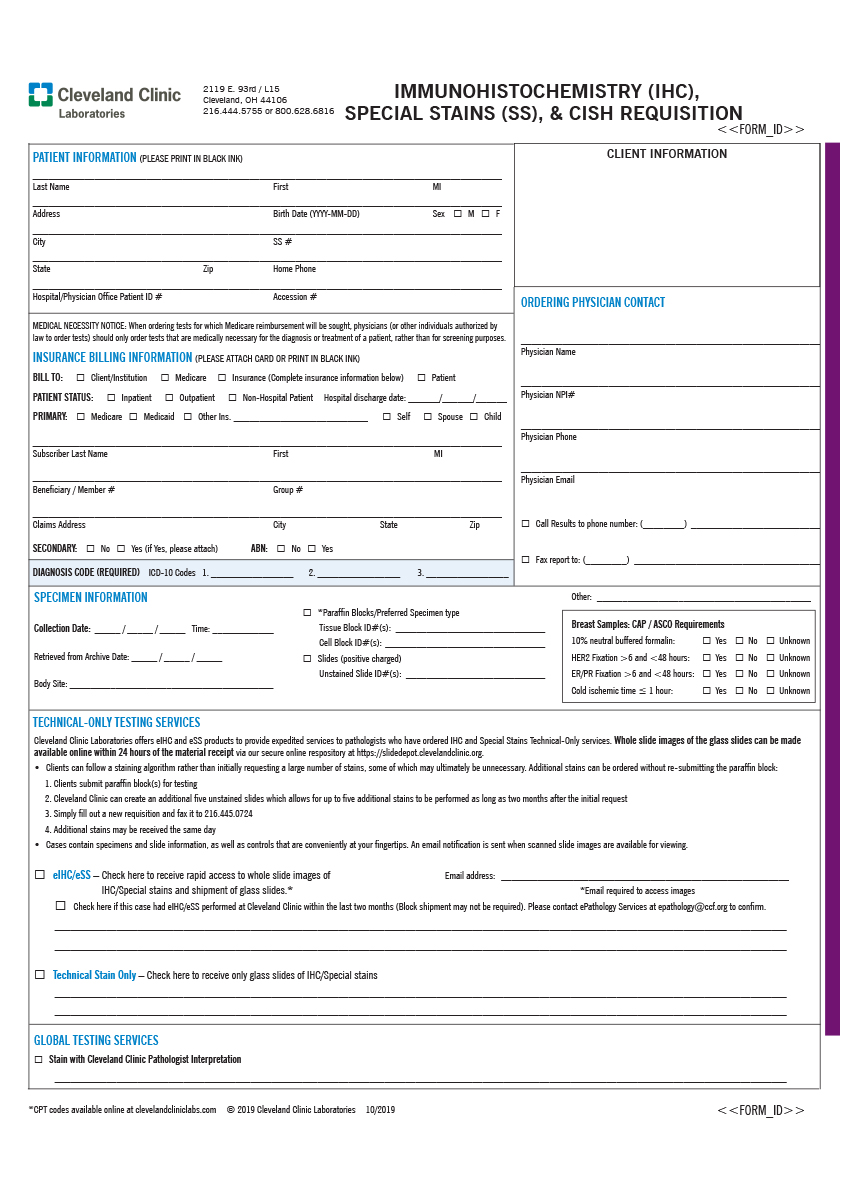 Requsitions and Forms – Immunohistochemistry (IHC), Special Stains (SS), and CISH Requisition