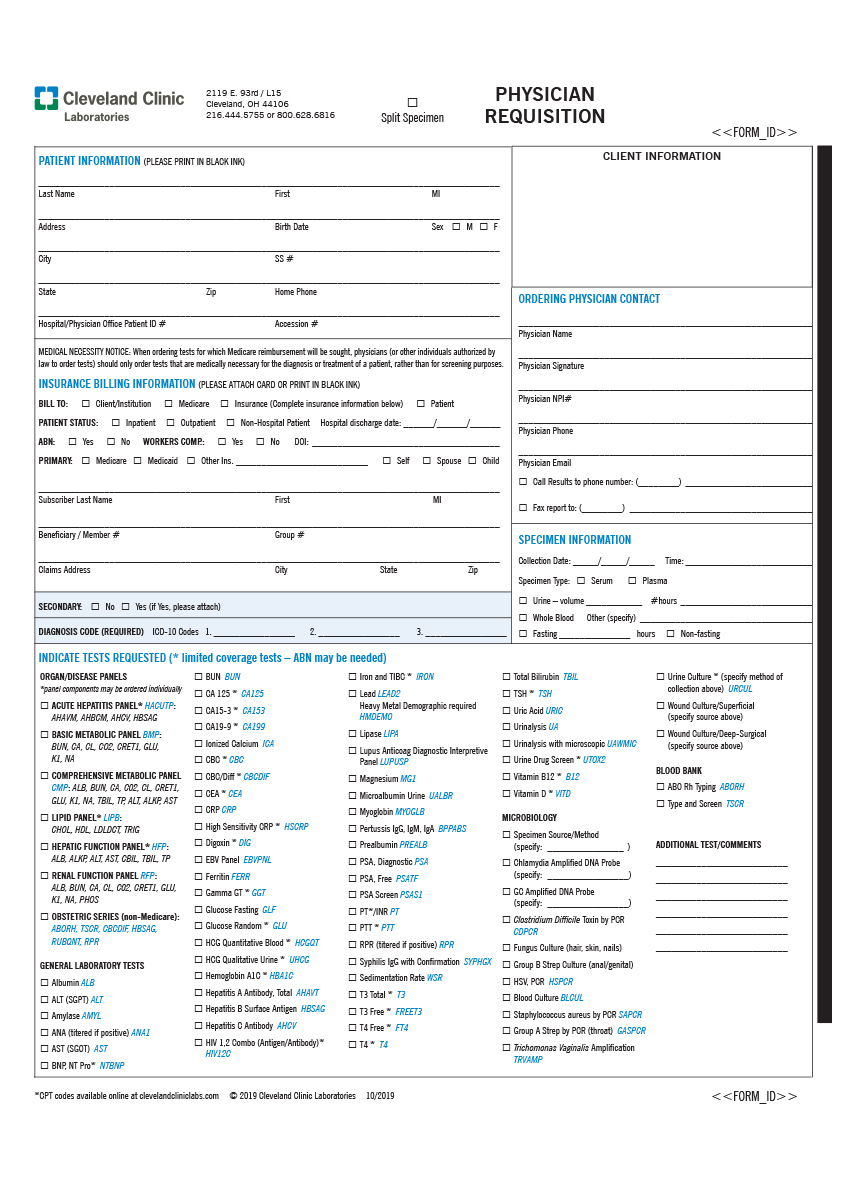 Requsitions and Forms – Physician Requisition